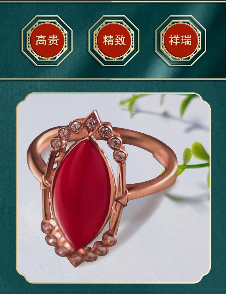 商品名称:18k金红珊瑚戒指套组