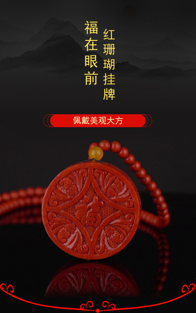 商品名称:福禧来福在眼前红珊瑚挂牌
