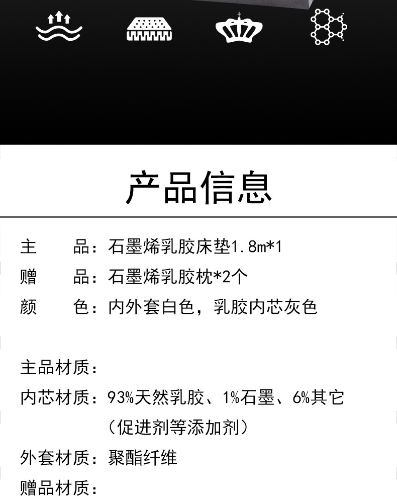 商品名称:泰米拉泰国进口石墨烯乳胶床垫1.8m