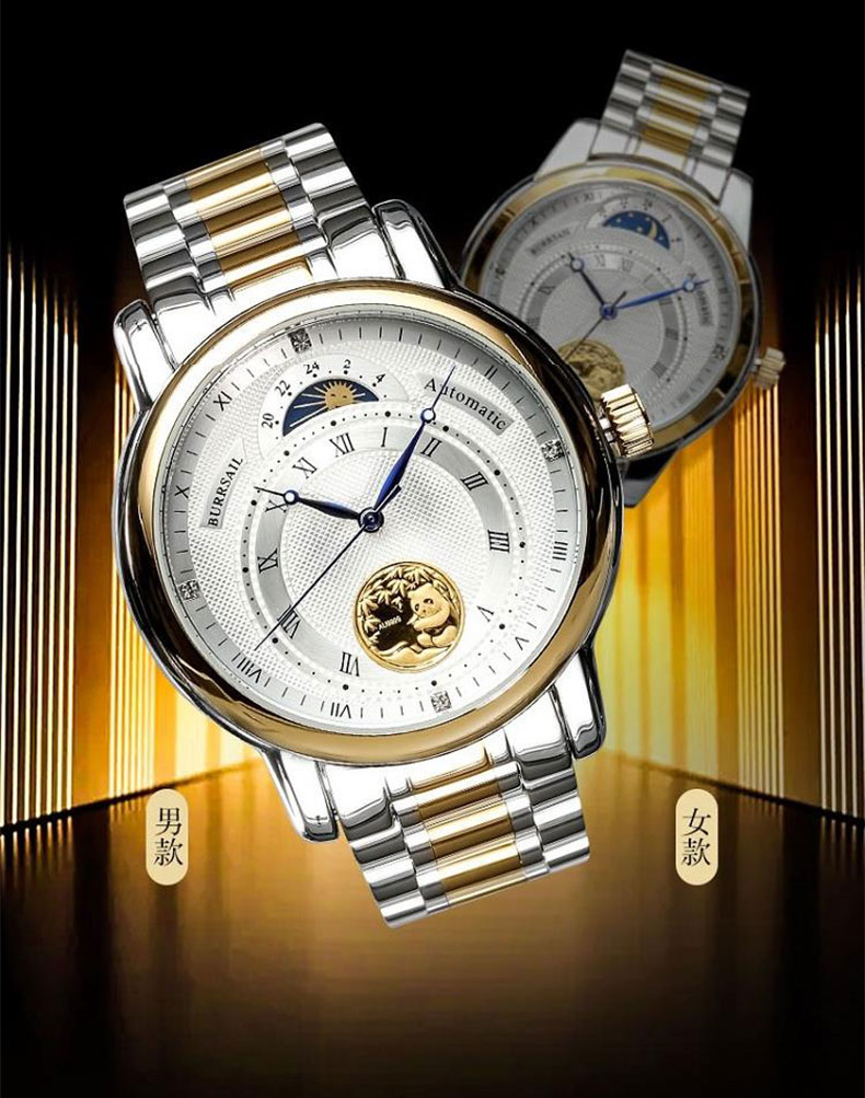 "商品名称:BURRSAIL足金熊猫钻石机械腕表