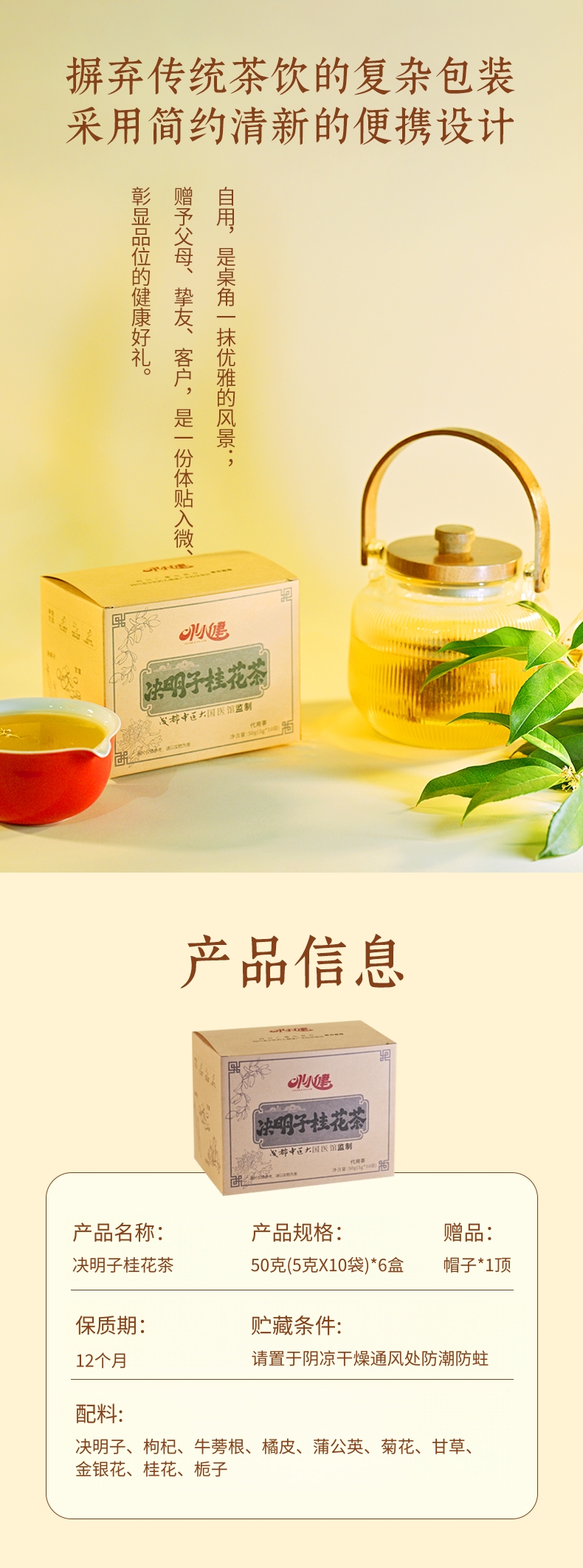 主商品:川小健决明子桂花茶50g(5g*10袋)*6盒