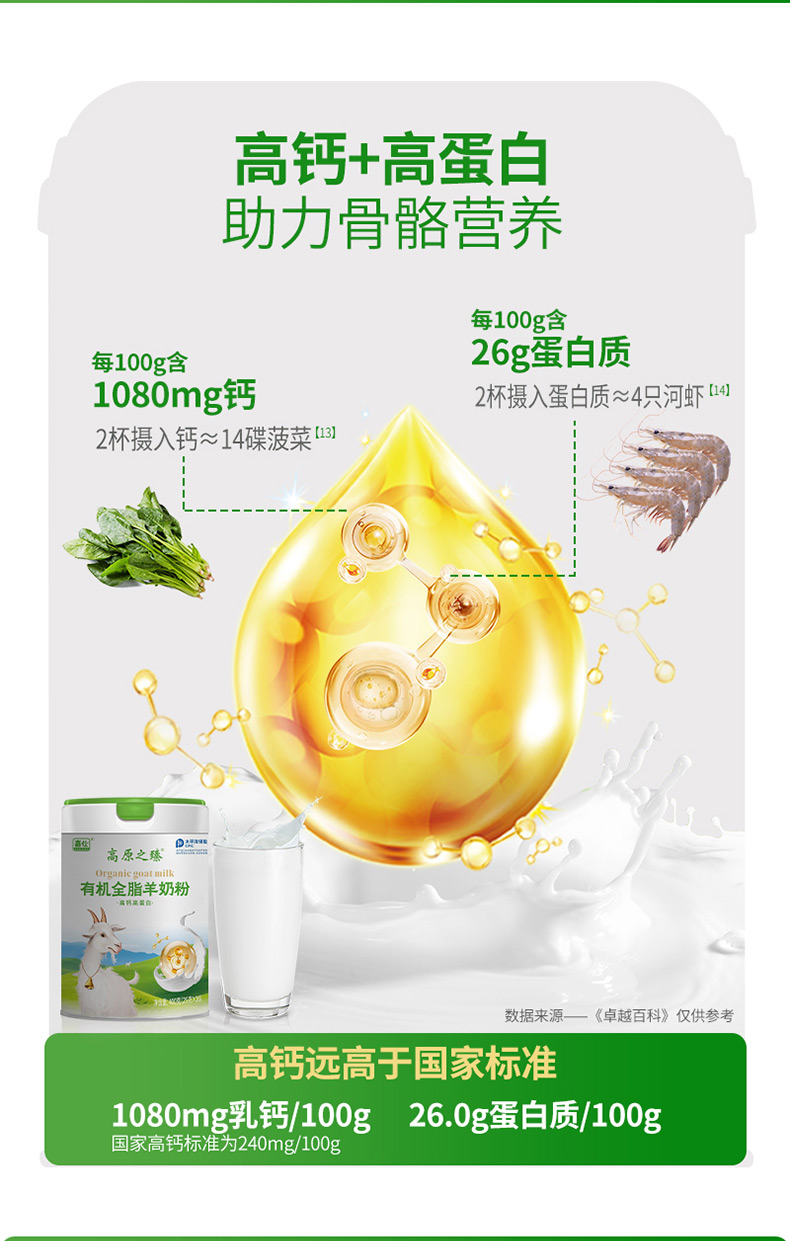 高原之臻有机全脂纯羊奶粉(400g*8桶)